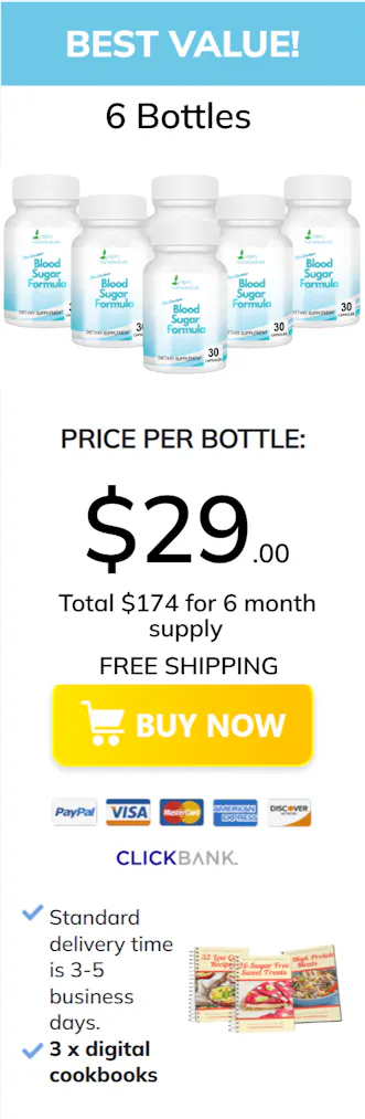 Click the yellow button below to add a specially discounted 6 bottle package of Natura Blood Sugar Formula to your order.